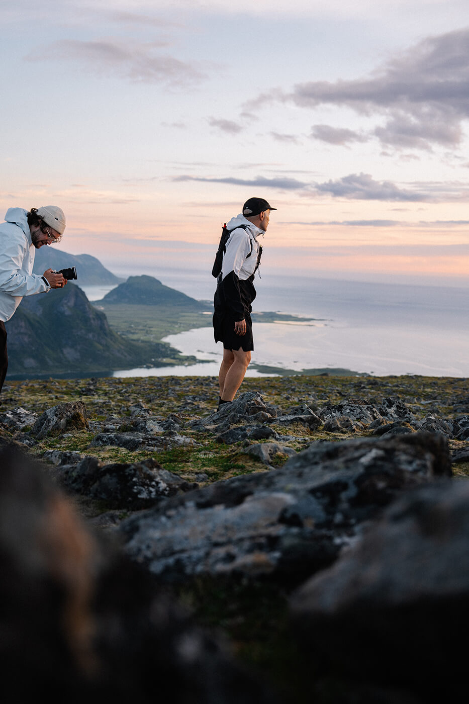 Schaue den Filmdudes über die Schulter, während sie mit der Sony FX3 auf den Lofoten ein Video über einen Trailrunner drehen.