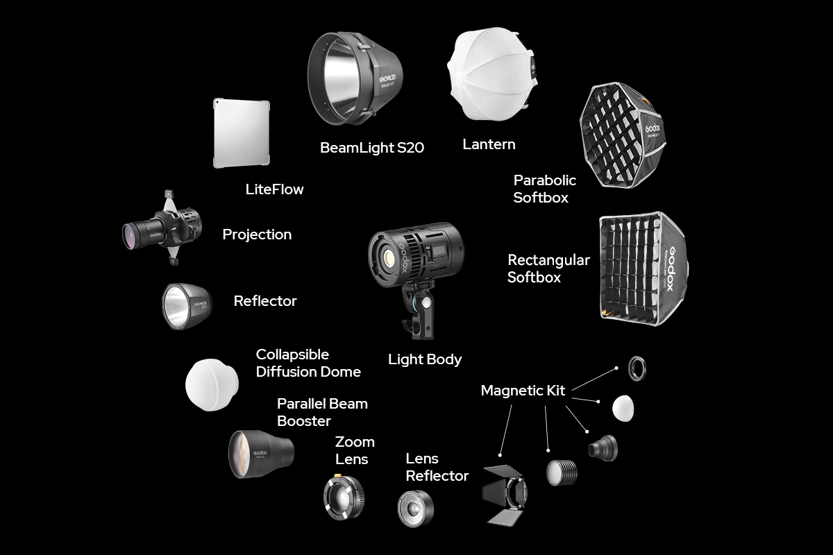 Das optische Design von Godox ist kompakt und effizient und liefert eine bis zu 10-mal höhere Helligkeit im Vergleich zu reinem Licht.